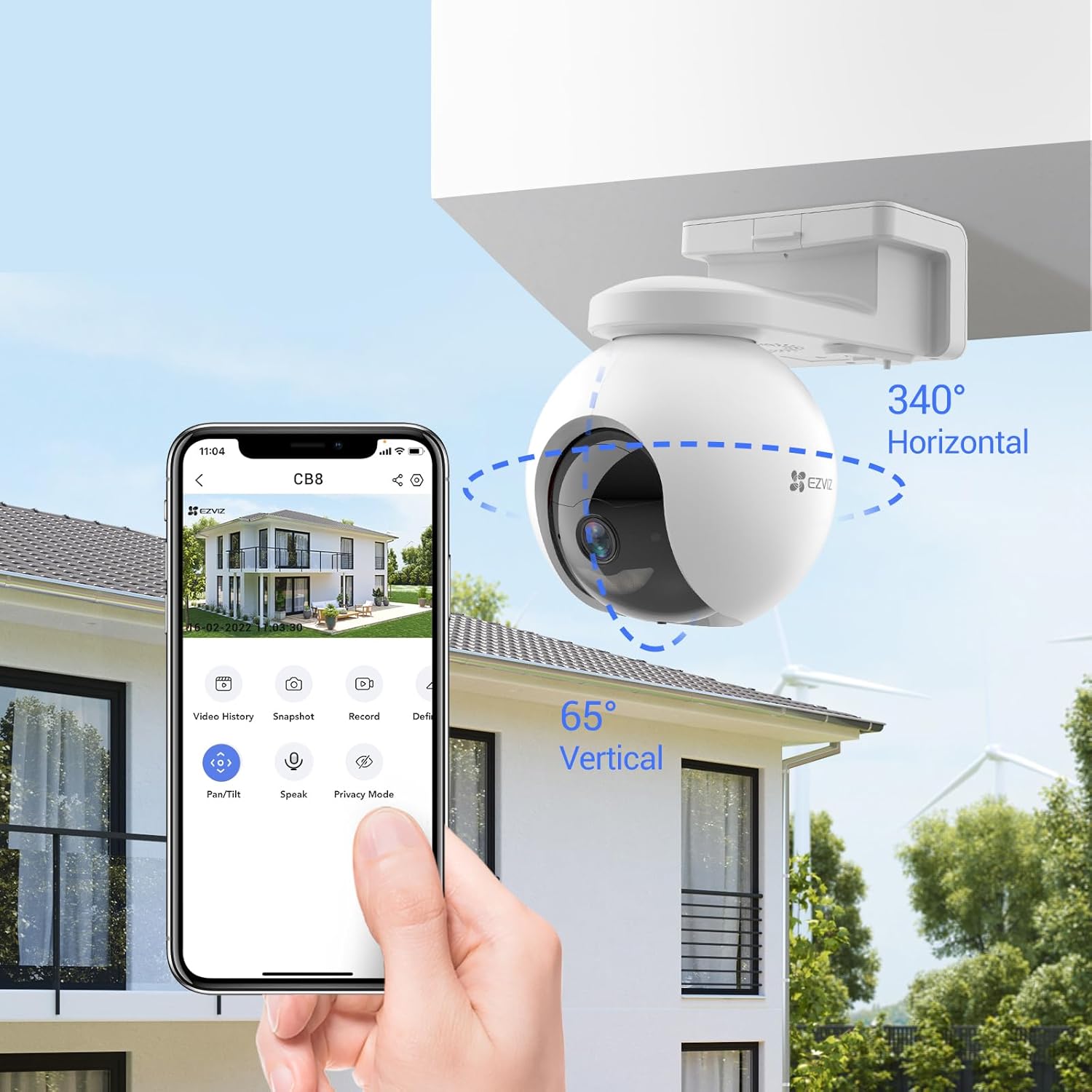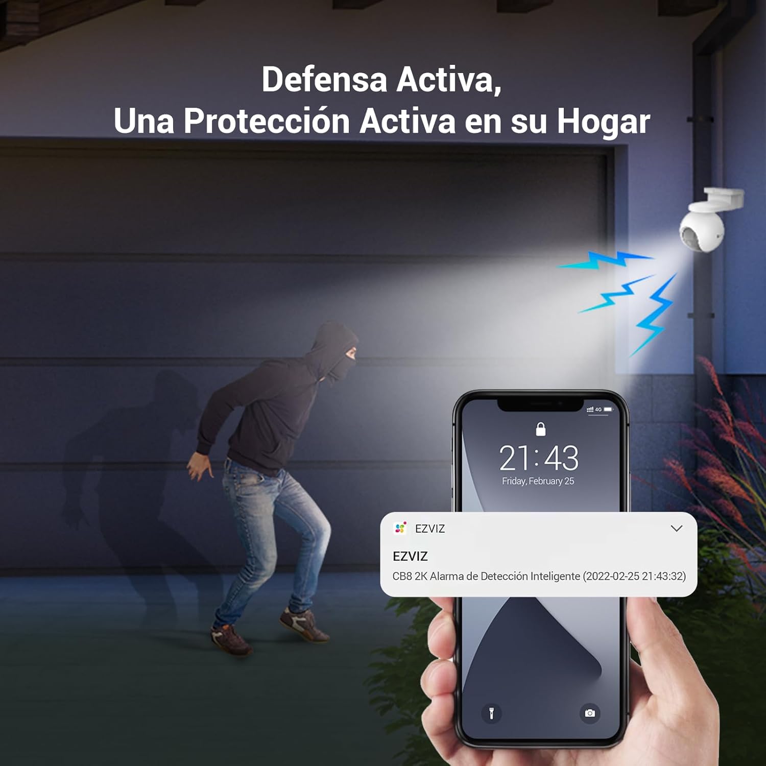 La cámara CB8 2K es realmente una cámara doméstica sencilla: 100 % sin cables, para llevarla a cualquier parte; motorizada, para obtener un campo de visión de 360 grados; y con la suficiente inteligencia para brindar protección doméstica automatizada. Por sus funciones, como la detección de personas el seguimiento automático y la visión nocturna en color, la CB8 2K ofrece el mismo rendimiento que las cámaras con cables, o incluso mejor. La cámara no necesita, en absoluto, una instalación compleja como una cámara exterior. Al funcionar con el panel de energía solar opcional, la cámara CB8 2K no requiere supervisión.