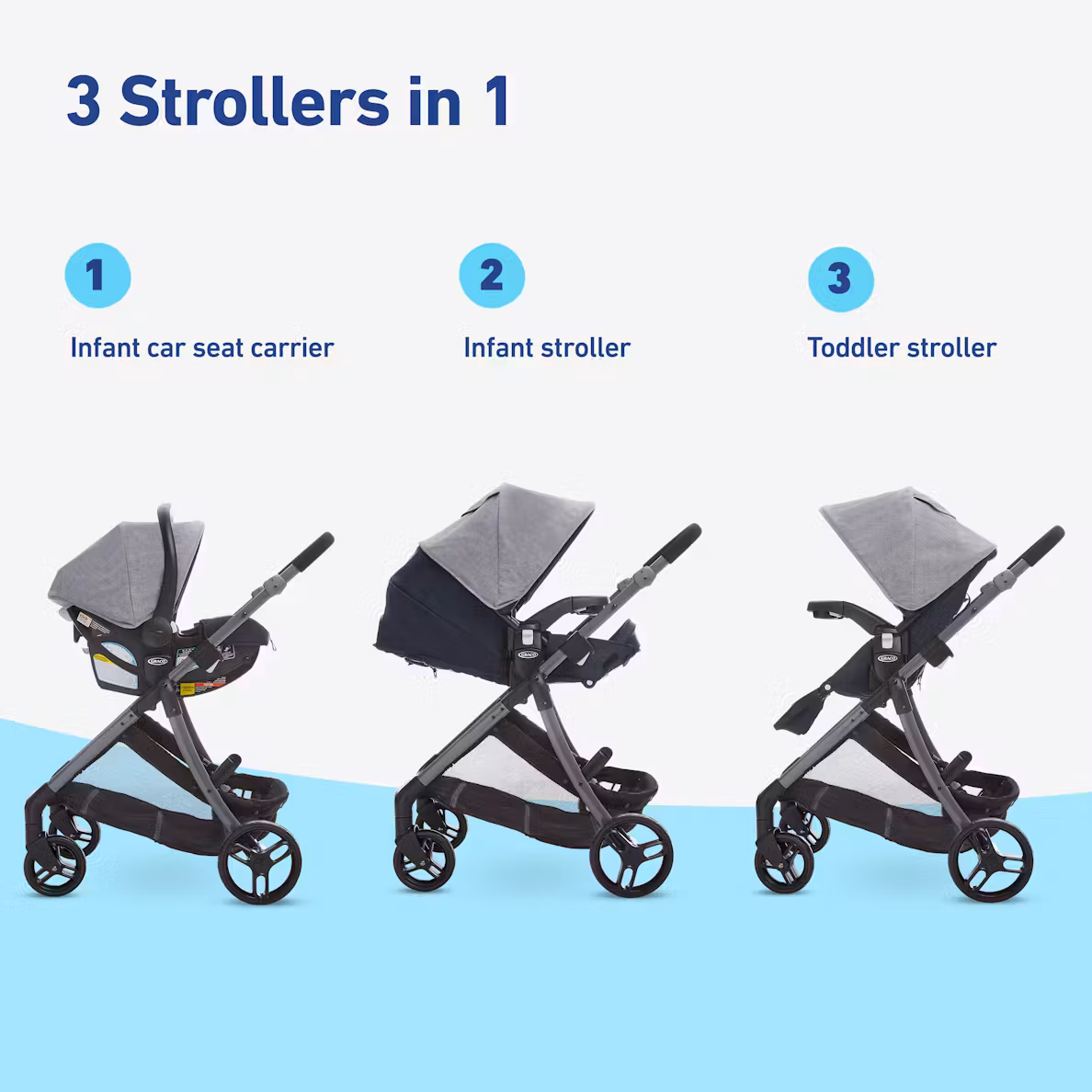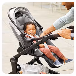 Acerca a tu bebé con el sistema de viaje Graco® Modes™ Closer Travel System, que cuenta con el asiento Slide2Me™ regulable en altura, que se puede ajustar fácilmente a 3 posiciones de altura para compartir momentos preciosos en los paseos diarios.