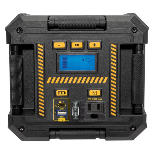 ¡Pero eso no es todo! El compresor de aire incorporado de 120 PSI infla neumáticos de automóvil y equipos deportivos con facilidad, y el adaptador de aguja deportiva incluido amplía su versatilidad. Para mayor seguridad, el compresor cuenta con un nuevo temporizador de apagado automático de 10 minutos para evitar el sobrecalentamiento accidental.