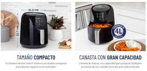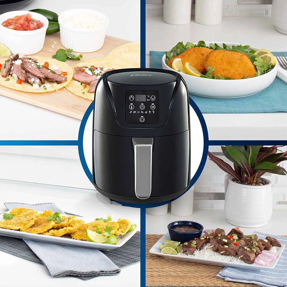 - Cocina hasta con 99.5% menos aceite, comparado con freidoras tradicionales Oster® de 4 litros