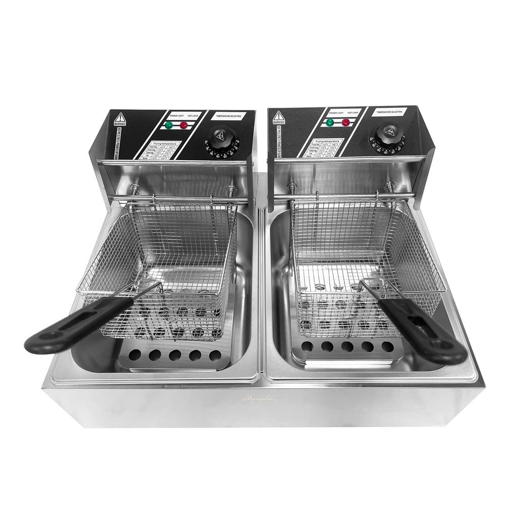 Freidora Profesional Doble Cesta Electrica 12L Acero Inoxidable Marigold