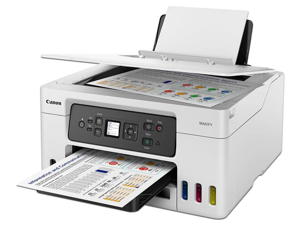 La impresora MAXIFY GX3010 inalámbrica 3 en 1 (impresión, copiado y escaneo) amplía la línea de impresoras de tanque recargable de Canon a un precio cada vez más asequible. Esta impresora utiliza un sistema de suministro de tinta continuo, que puede reducir significativamente los costos de tinta mediante el uso de botellas de tinta de alto volumen