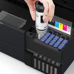 La EcoTank L8180 es una impresora de fotos 3 en 1 que ofrece una excelente calidad de impresión fotográfica de hasta A3+, con su configuración única de tinta Claria ET 6, que incluye gris y negro pigmentado, con la conveniencia del reemplazo de alto rendimiento y ultra bajo costo de EcoTank, con botellas de tinta que rinden hasta 2300 fotografías 4X6″