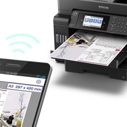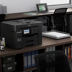 La impresora EcoTank L15150 multifuncional tiene un diseño compacto para impresiones rápidas y a bajo costo con menos intervenciones y tiempo de inactividad. Cuenta con capacidad de hasta 500 hojas en las dos bandejas frontales con botellas de reemplazo de tinta que permiten imprimir hasta 7.500 páginas ISO (negro) y hasta 6.000 páginas ISO (color)¹.