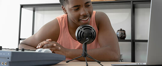 - Snowball ICE incluye un soporte de sobremesa con trípode ajustable, que permite colocar el micrófono USB en relación con la fuente de sonido para mejorar la calidad vocal y de audio