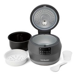 La Nutribullet EveryGrain es una olla de cocción versátil y eficiente. Prepara granos a la perfección, desde arroz hasta quinoa, gracias a sus configuraciones preestablecidas especializadas. Además, cuenta con un programa general para granos exóticos. Su función de vapor permite la preparación de vegetales, pescado y otros alimentos de manera sencilla. cucharadas de arroz o granos secos. Incluye una canasta de cocción al vapor que se puede usar de manera independiente o simultánea con los granos.